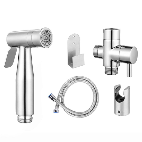 Распродажа 304, ручной туалетный биде из нержавеющей стали, комплект, портативный туалетный распылитель Shattaf с шлангом и Т-образным клапаном